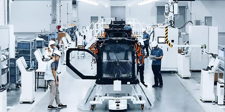 Aridge, filial de Xpeng Motors, ha presentado el primer coche volador modular ‘Land Carrier’ en su planta de Guangzhou, en el distrito de Huangpu, inaugurando así la que la compañía denomina la primera línea de producción en serie de coches voladores del mundo. El objetivo inicial es que este primer modelo se utilice para vuelos de prueba experimentales, verificando su rendimiento y puliendo en lo posible los procesos productivos. De esta forma, Aridge pretende sentar las bases para poder producir coches voladores a gran escala ya en 2026.