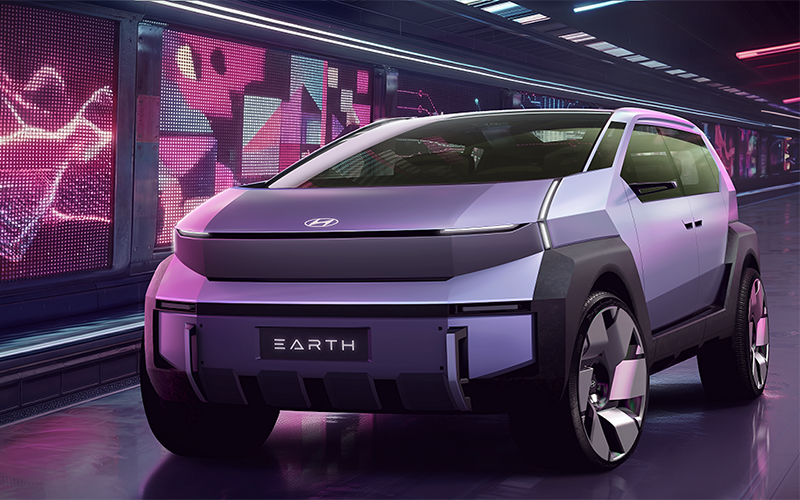Y el IONIQ EARTH Concept, que es un SUV familiar de grandes dimensiones que enfatiza la fiabilidad, el espacio y una conexión más orgánica con la sostenibilidad. Acabado en ‘Aurora Shield’, el diseño exterior marca el equilibrio entre bordes afilados y volúmenes esculpidos y crea una imagen futurista.