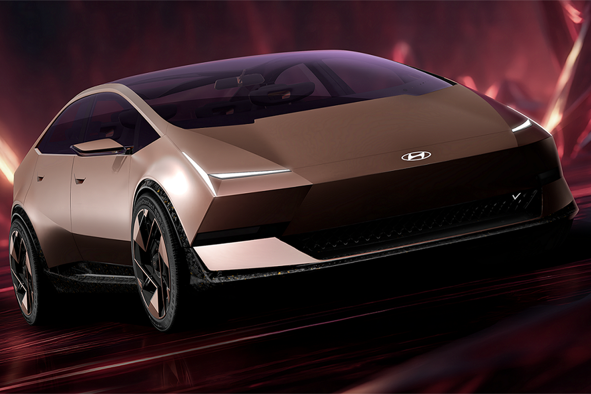 Los dos primeros en presentarse en sociedad son el IONIQ VENUS Concept, un sedán eléctrico con una silueta de curva única, orientado a un público joven y vanguardista que prioriza el diseño y la tecnología urbana. Acabado en un llamativo ‘Radiant Gold’ que evoca una narrativa de innovación, exploración y triunfo, su exterior de alta tecnología incorpora un techo ligero de estructura en marco y un alerón transparente.