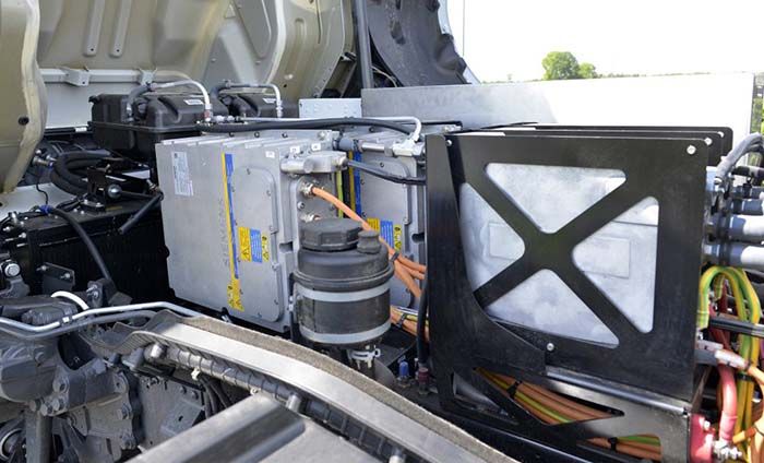 La empresa alemana DAF, especialista en la fabricación de camiones, ha presentado un camión totalmente eléctrico que utiliza un paquete de baterías de 170 kWh y una capacidad de 40 toneladas, que le permite tener una autonomía de 100 kilómetros, suficientes, según el fabricante, para la distribución urbana.