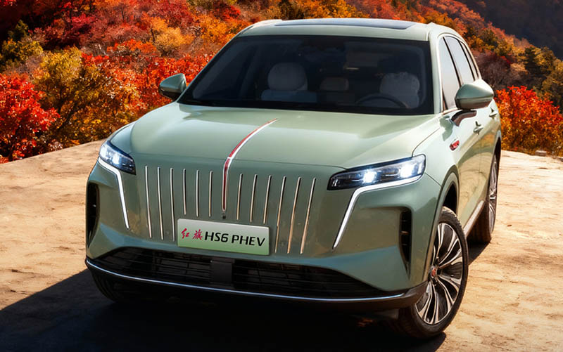 El HS6 cuenta con una enorme parrilla con doce barras verticales cromadas, más una barra central que se extiende sobre el capó, donde se transforma en el adorno de la bandera roja, logotipo de la marca. Este SUV chino híbrido enchufable tiene unas dimensiones de 4.995/1.960/1.760 mm, con una distancia entre ejes de 2.920 mm. La capacidad del maletero es de 503 litros como mínimo (ganando 49 litros adicionales en espacio oculto) y 1.977 litros de espacio máximo.
