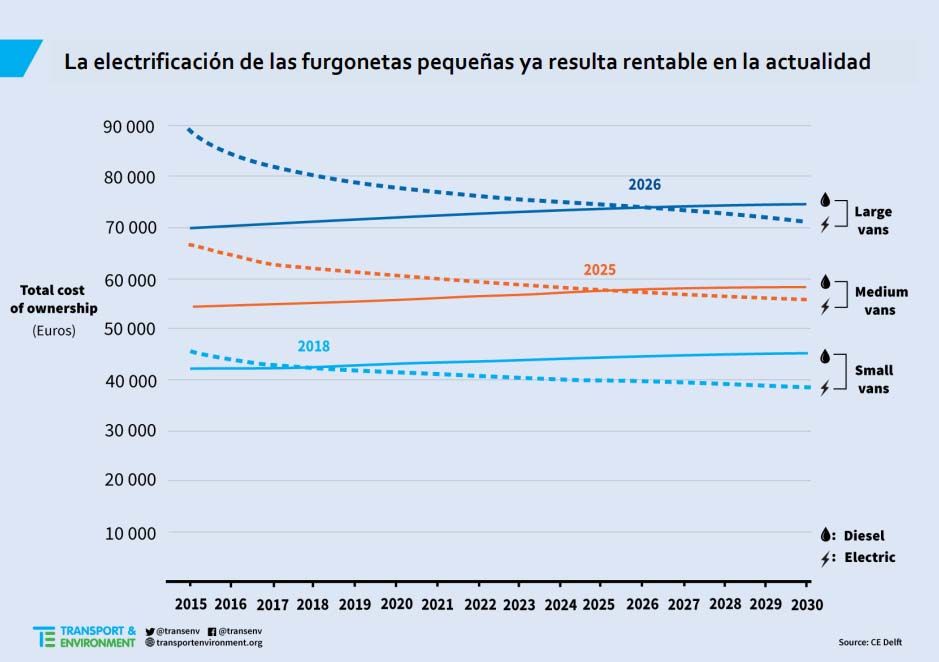 Un estudio de CE Delft demuestra que las furgonetas eléctricas tienen el mismo coste total que las diésel pequeñas, que constituyen el 40% del total de las ventas en la Unión Europea. La legislación y los incentivos deben corregir la escasez de modelos en oferta.