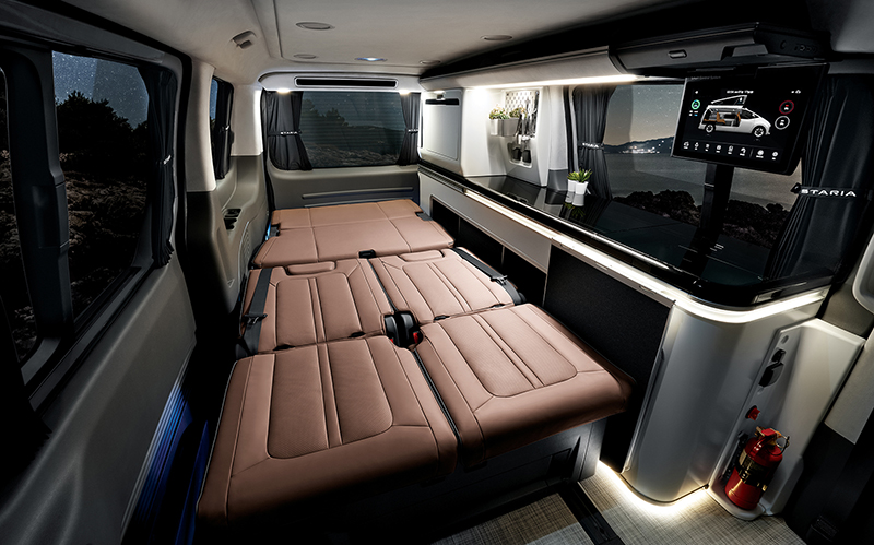 - El Hyundai Staria Camper Concept es un modelo de autocaravana basado en el monovolumen Hyundai Staria Electric
