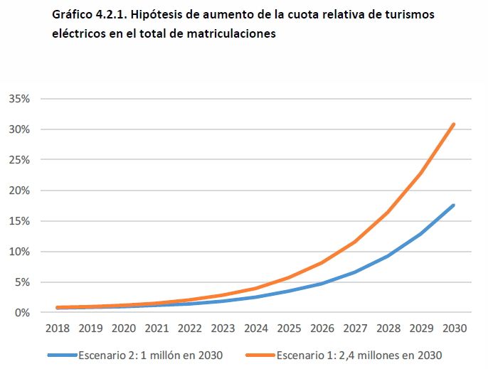 El Informe de la Comisión de Expertos de Transición Energética establece que la electrificación gradual del parque de vehículos requiere de la educación del usuario y el aumento de la presión impositiva al diésel. El más conservador de los escenarios que establece el informe prevé una cuota del 18% de vehículos eléctricos en 2030.