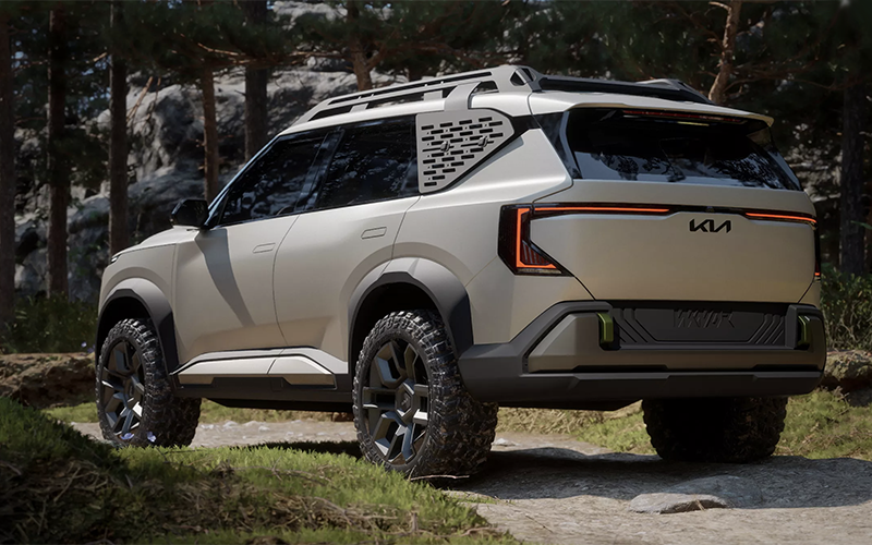 - Los parachoques del Kia EV5 Weekender sacan músculo y el revestimiento más robusto con pasos de rueda ampliados refuerza su vocación todoterreno