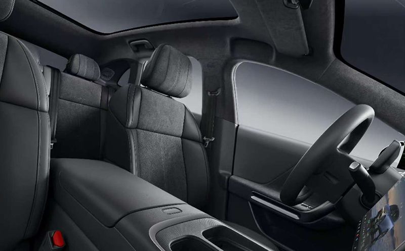 El nuevo modelo, que estará disponible en seis colores exteriores: Amarillo Eléctrico, Gris Tormenta, Azul Estrella, Rosa Morgan, Plata Galaxia y Negro Metalizado, presenta un habitáculo de una única tonalidad, caracterizado por un diseño minimalista y con un techo corredizo panorámico. El tablero y los paneles de las puertas utilizan materiales mixtos, diseñados para lograr el tono uniforme en toda la cabina. La sobriedad y la practicidad se imponen sobre soluciones estéticas más visuales y atractivas de modelos de la competencia.