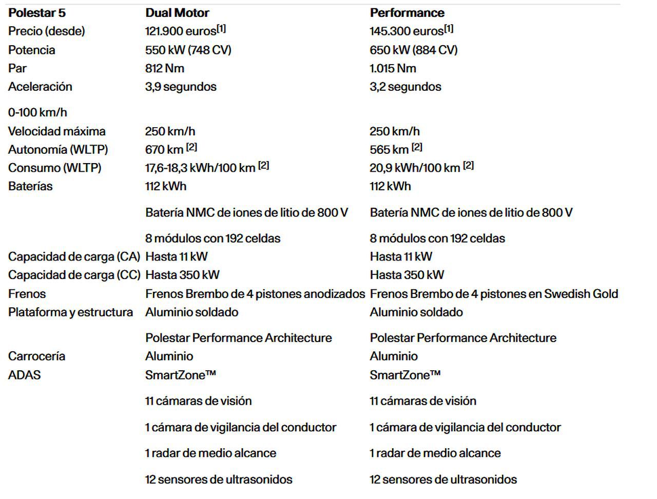 Ficha técnica del Polestar 5