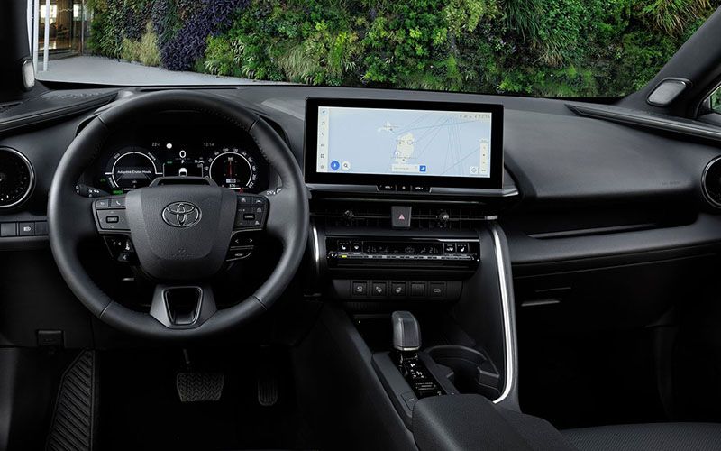 En el puesto de conducción, el Toyota C-HR PHEV destaca por un diseño funcional y cuidado que combina tecnología y confort de forma equilibrada. Cuenta con una pantalla táctil central de 9 pulgadas que se integra perfectamente en el salpicadero, facilitando el control del sistema multimedia, navegación y conectividad mediante Apple CarPlay y Android Auto, aunque para mí algunos de los gráficos son un poco pobretones.