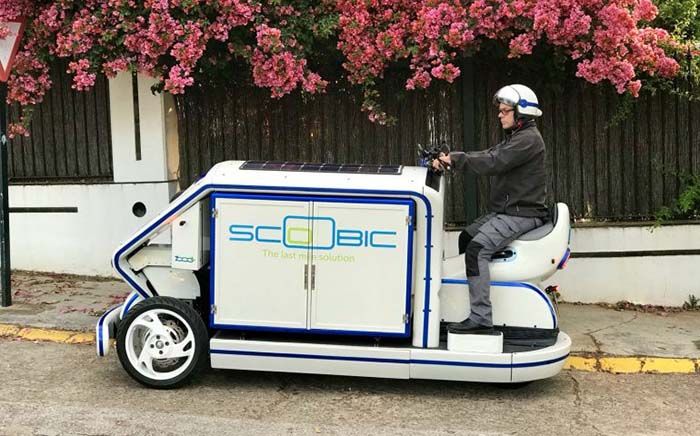 Scoobic es un vehículo eléctrico que, según sus creadores cuenta con la rapidez de una moto y las posibilidades de carga de una furgoneta, con 1.000 litros de capacidad y 750 kilogramos de peso admitido. Además puede transformarse en una carretilla lo que permite su acceso a zonas peatonales.