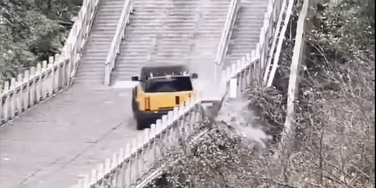 Podía salir mal y salió mal. Es lo que tiene proponer acciones arriesgadas para promocionar un coche en una vuelta de tuerca más al marketing viral. También podía haber salido bien, como ocurrió hace casi ocho años con el Range Rover Sport PHEV que consiguió superar el desafío de ascender los 11 kilómetros, las 99 curvas y los 999 escalones a 45 grados de pendiente de Tianmen Mounting en China pilotado por Ho-Pin Tung, ganador de Le Mans y piloto de la Formula E. En esta ocasión, el SUV chino híbrido enchufable, Chery Fulwin X3L, quiso repetir la hazaña y acabó estrellándose contra las vallas cuando caía sin control escaleras abajo.